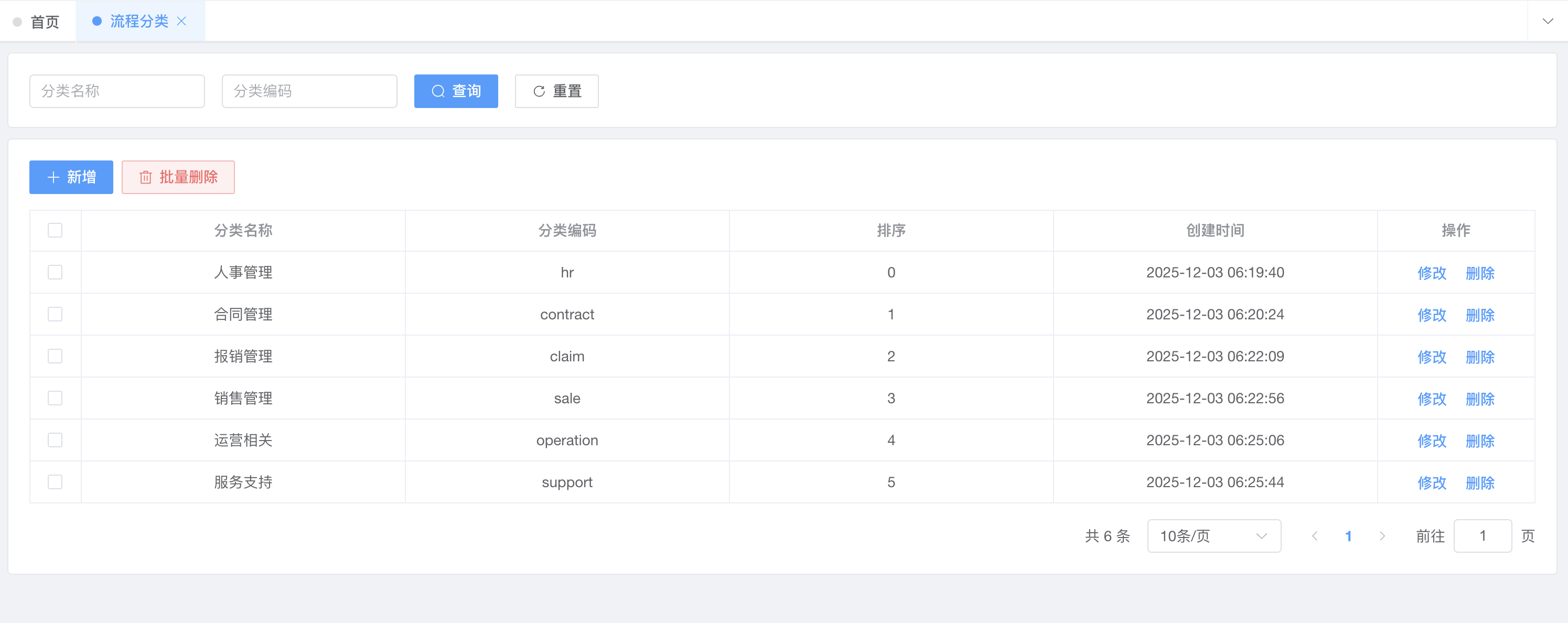 流程分类,就是把工作流进行分类,方便查看。发起流程时,可以通过分类,快速找到对应的流程。